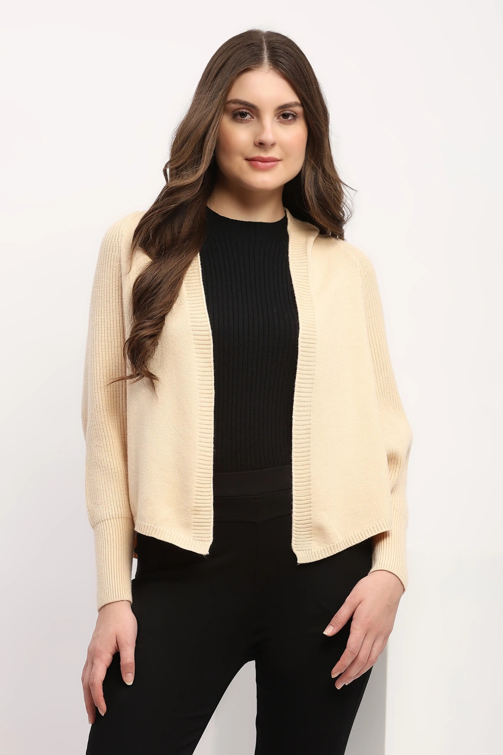 Add to WishlistStay cozy and stylish this winter with this hooded shrug, crafted from a soft blend of 51% viscose, 21% polyester and 22% nylon. The two types of weave add subtle texture and visual interest, breaking the monotony while keeping the design elegant. Lightweight yet warm, it offers comfortable layering over sweaters or tops. Designed with a loose fit, batwing full sleeves, hip length cut and front open style, this shrug combines effortless comfort with casual sophistication.