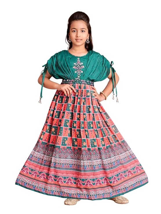 Add to WishlistStep into a world of vibrant colors and timeless elegance with our Girls Ethnic Wear Embroidered and Printed Gown. Designed to capture hearts, this exquisite gown will make your little one feel like royalty. Picture your child twirling in a dress that combines tradition with playful charm—it’s an experience as delightful as a warm hug!