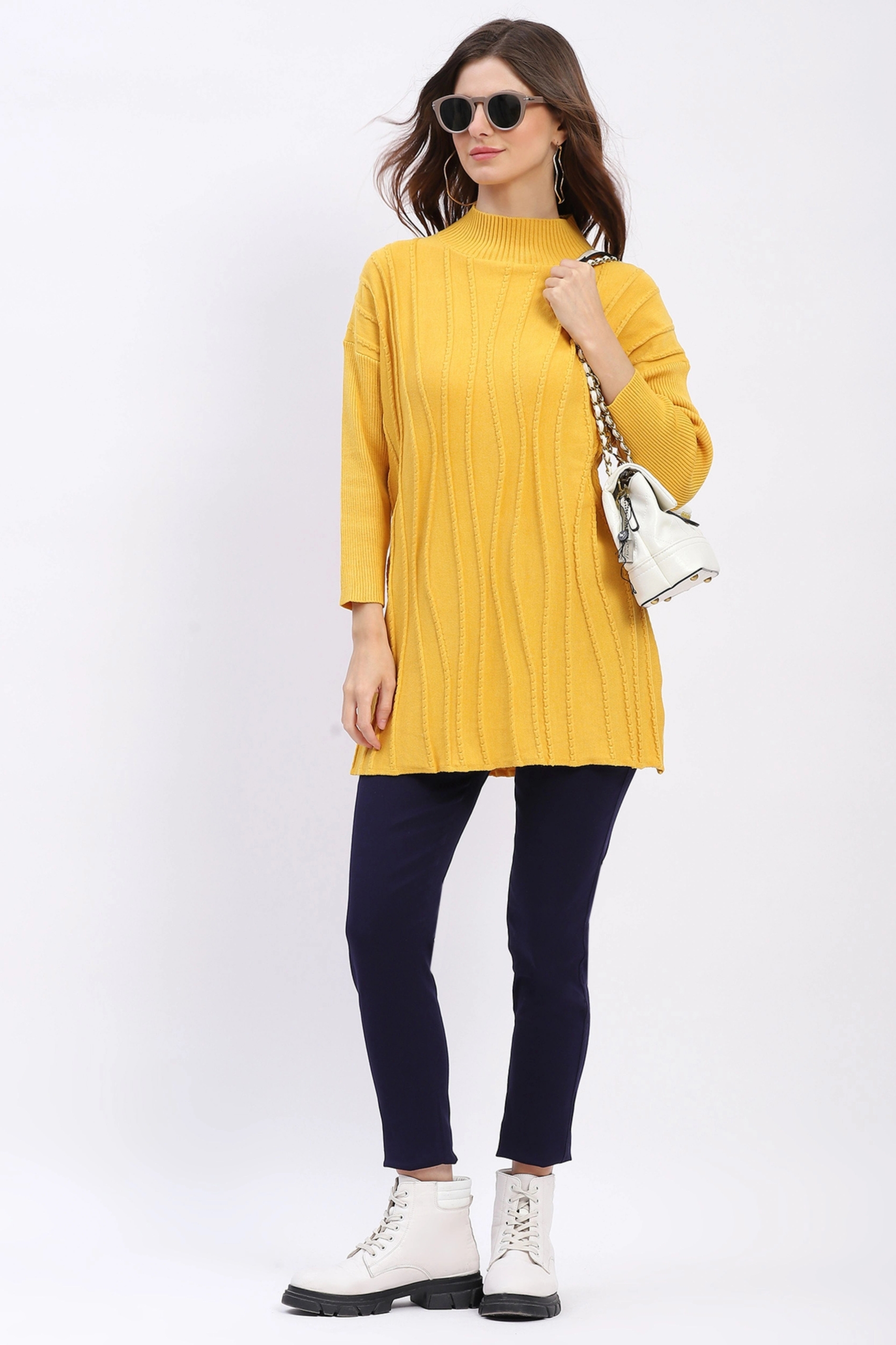 Textured High Neck Tunic Pullover for Women Stylish Winter Knitwear